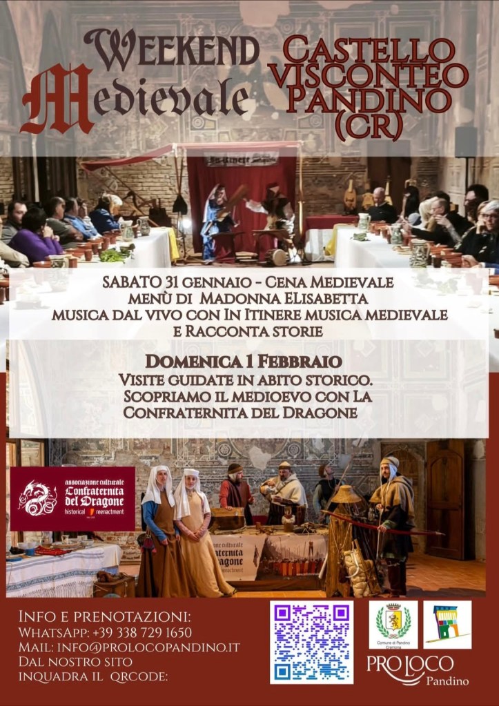 Animazione musicale e recitazioni per un accurato banchetto medievale ambientato nel XIV secolo. Per info e prenotazioni: info@prolocopandino.it